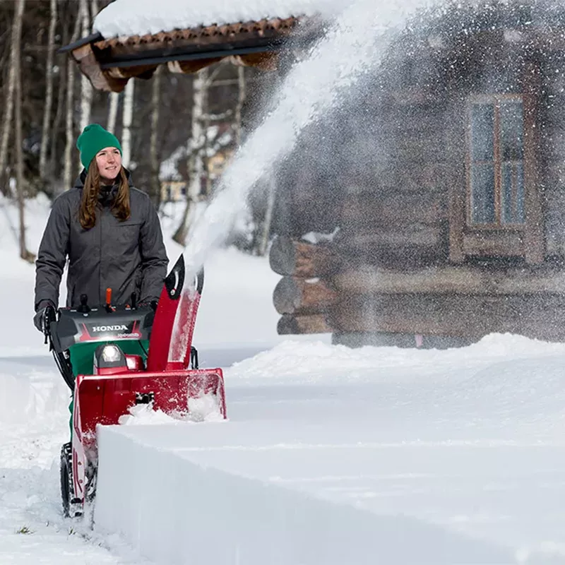 Надежная мощность двигателя GX200 обеспечивает высокую эффективность уборки и впечатляющую дальность отбрасывания при компактных размерах машины. Эта двухступенчатая модель может работать при любом уровне заснеженности и в любое время суток благодаря мощному светодиодному прожектору.