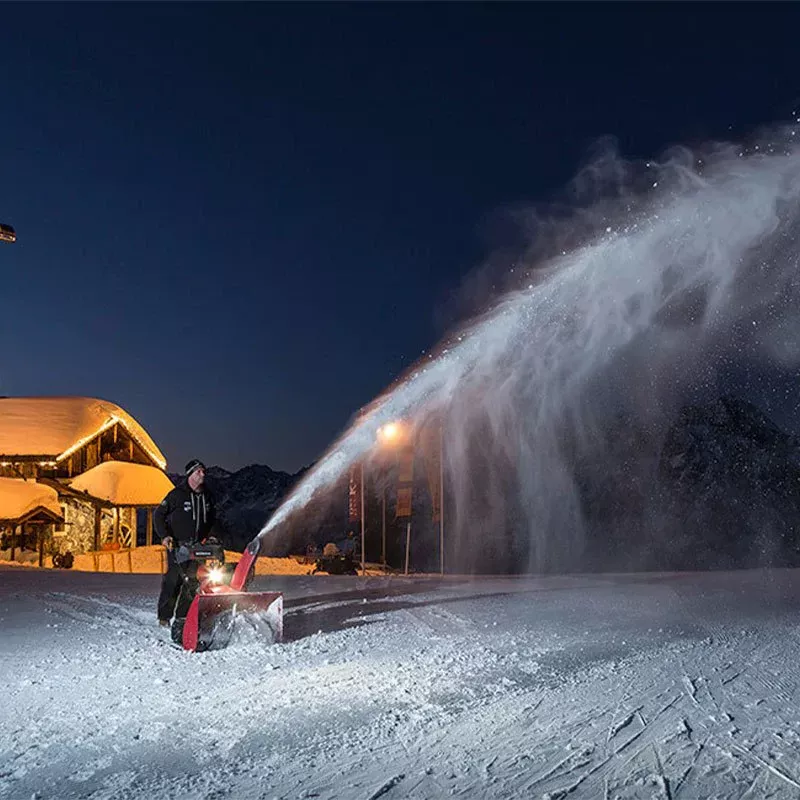 Снегоуборочник серии 9 оснащен различными функциями, обеспечивающими наиболее комфортные условия работы. Они включают гидростатическую трансмиссию, электрический пуск, светодиодный прожектор и счетчик моточасов. Кроме того, двигатель GX270 работает почти бесшумно, с очень низким уровнем выбросов.