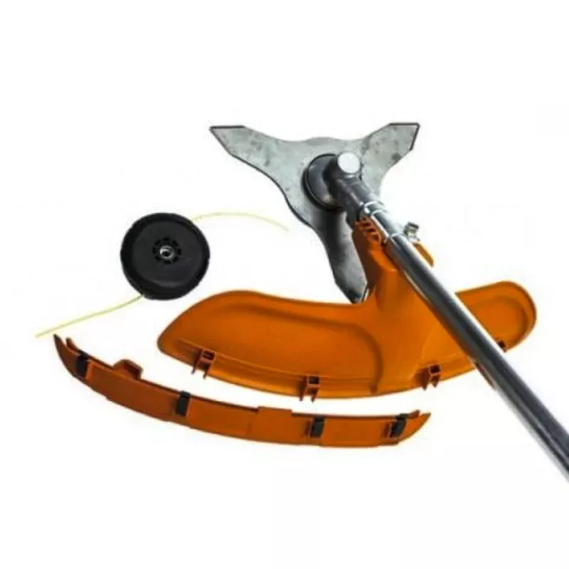 Велосипедная регилируемая рукоятка для наибольшего комфорта оператора во время работы с триммером. Универсальный защитный кожух