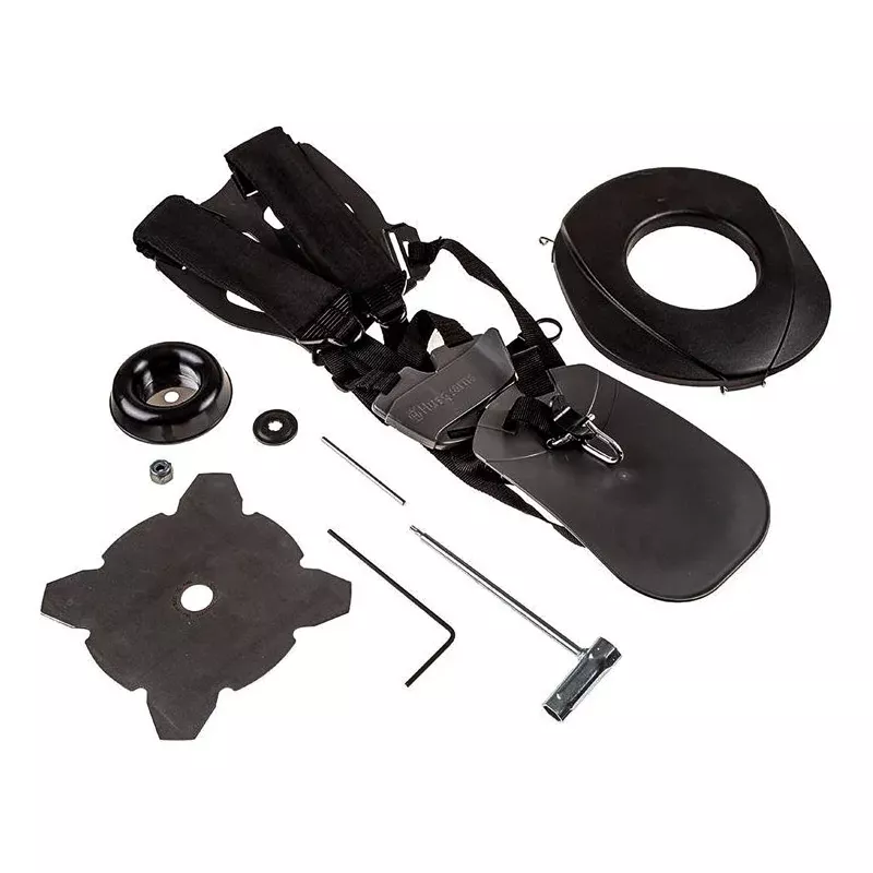 Бензокоса поставляется с триммерной головкой, а также режущим диском. При помощи лески удобно скашивать молодую растительность. Диск для травы используется для кошения сорняков, а также жесткой и густой растительности. За счет специальной конструкции обрезки не будут разлетаться в разные стороны.