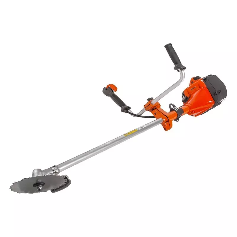 Бензиновый триммер Husqvarna 545FX предназначен для срезания кустарников и тонких деревьев. Жесткий приводной вал с частотой вращения 10100 об/мин обеспечивает передачу максимальной мощности на пильный диск. Кусторез оснащен двухтактным двигателем мощностью 3 л.с. с системой легкого запуска. Конструкция с регулируемой U-образной рукояткой и ранцевым ремнем позволяет работать продолжительное время, не испытывая усталости.
