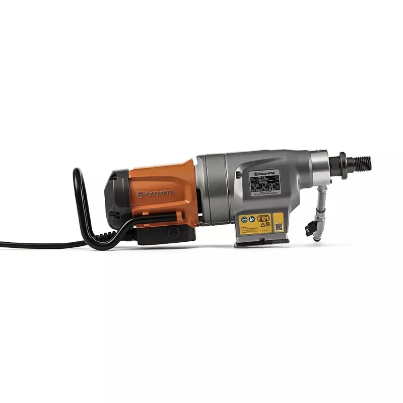 Электромотор Husqvarna DM 400 оснащен трехскоростной коробкой передач с водяным охлаждением, светодиодной системой индикации нагрузки Elgard, и системой плавного пуска SoftStart. Мощность 3,2 кВт позволяет быстро сверлить отверстия в материалах даже с самым сильным армированием. Электромотор совместим с насадкой для автоматического бурения Husqvarna AD10.