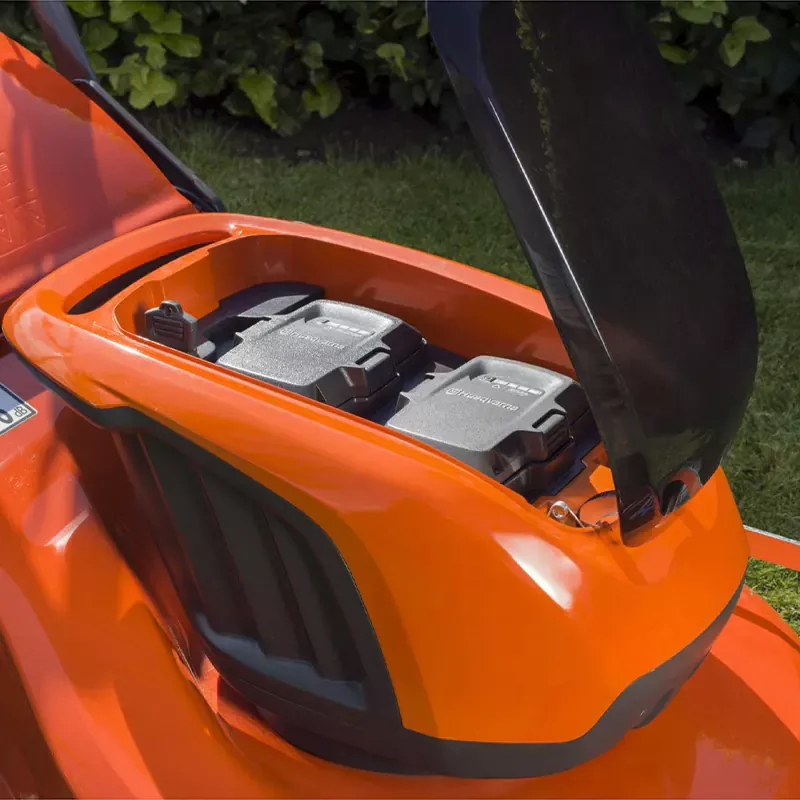 Газонокосилка имеет два слота для батарей, совместимые со всеми аккумуляторами Husqvarna, обеспечивают повышенную продолжительность работы и повышенную экономичность.