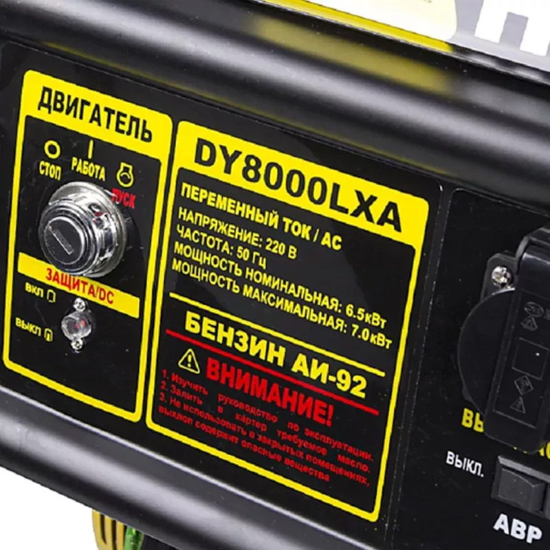 Бензиновый генератор Huter DY8000LXA рассчитан на подключение техники, суммарная мощность которой не превышает 6,5 кВт. В модели есть автоматический регулятор напряжения AVR, который обеспечит стабильное питание, необходимое для чувствительных потребителей.