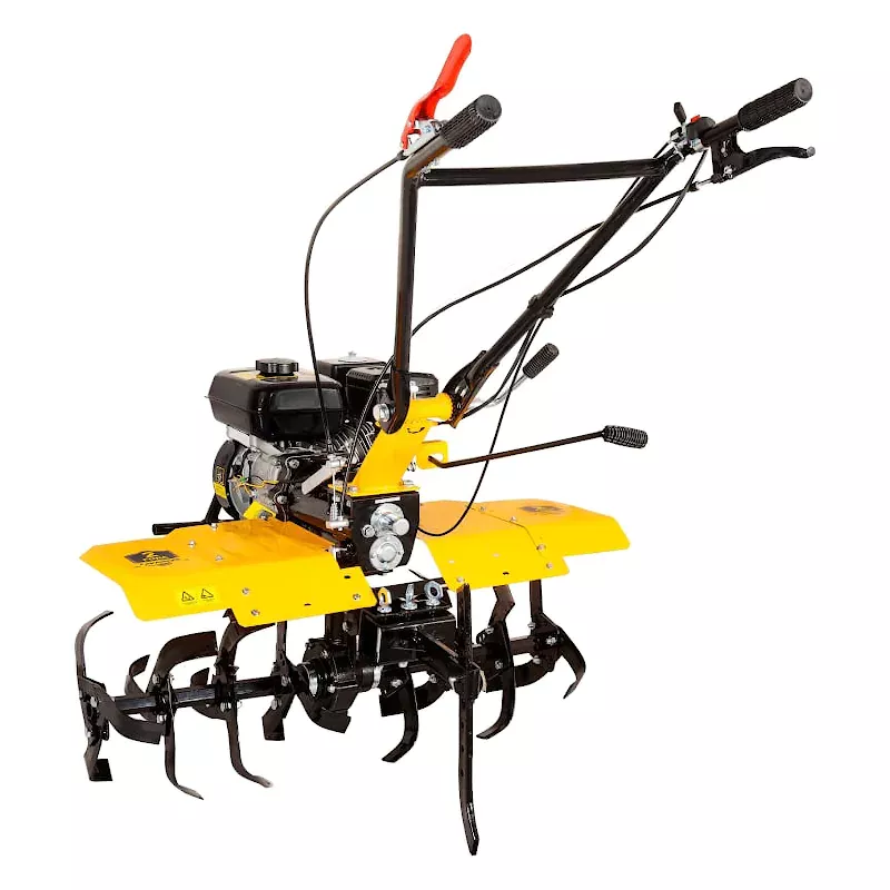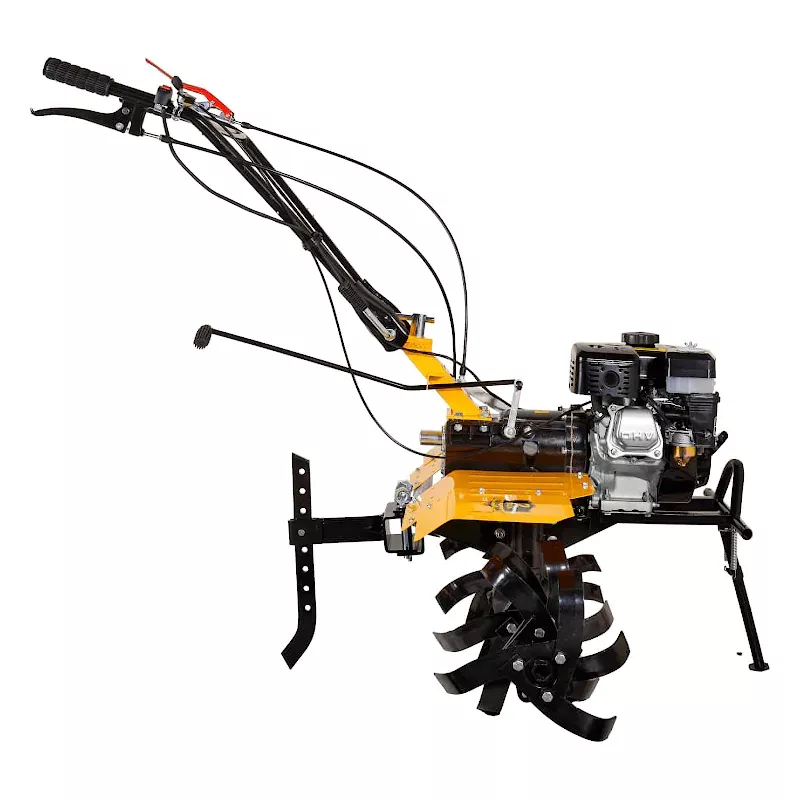 - Двигатель мощностью 7.8 л.с. подходит для обработки почв любого характера, включая целинную