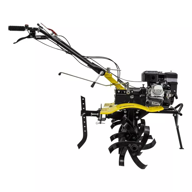 Бензиновый мотоблок HUTER МК-1008Р представляет собой мощную, высокопроизводительную сельскохозяйственную машину с комплектом стальных фрез диаметром 30 см. Мотоблок оснащён компактным одноцилиндровым 4-тактным бензиновым двигателем мощностью 8 л.с. Этой мощности достаточно выполнения большого объёма работ и обработки почв любых типов, включая даже целинные. Запускается двигатель посредством ручного стартера. Благодаря воздушному фильтру с масляной ванной эта сельскохозяйственная машина способна стабильно работать в условиях сильной запыленности.