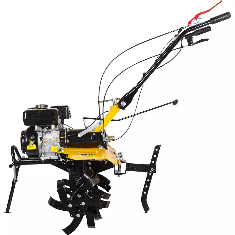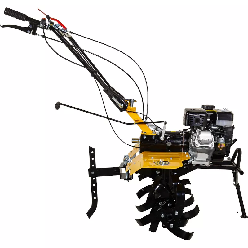 Сельскохозяйственная машина HUTER МК-8000РL поставляется с комплектом фрез, обеспечивающих вспашку почвы на ширину 100 м и глубину до 30 см. Агрегат имеет универсальное применение благодаря возможности установки навесного оборудования, такого как плуг, сошник или окучник. Мотоблок оснащен четырехтактным двигателем с воздушным охлаждением мощностью 8 л.с., который заводится с помощью ручного стартера. Шестеренчатый редуктор в масляной ванне обеспечивает продолжительный срок службы машины.