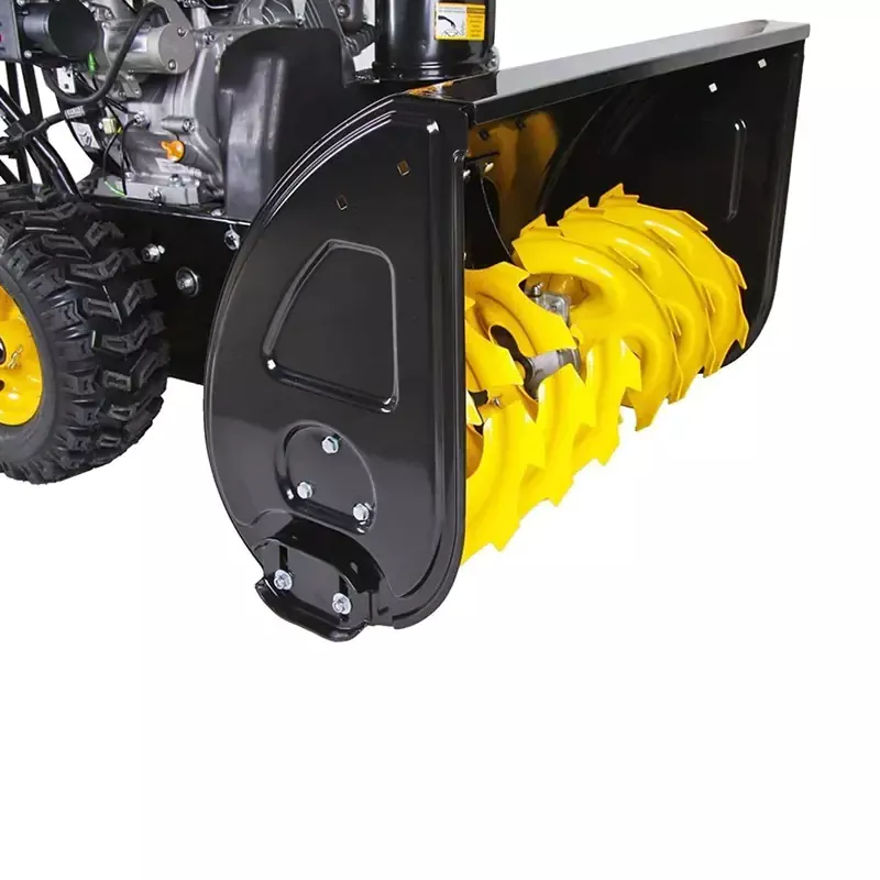 Поворот желоба вручную настраивается на 180 °. Это позволит избежать забрасывания снегом уже расчищенных мест.