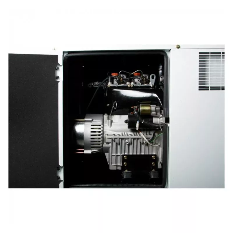Электростанция работает на дизельном 4-хтактном двигателе с прочной фиксацией клапанов, надёжном и долговечном. Благодаря инжекторной системе впрыскивания топлива ресурс расходуется экономно. За смазку поршней отвечает автоматический маслонасос - устройство работает бесперебойно.