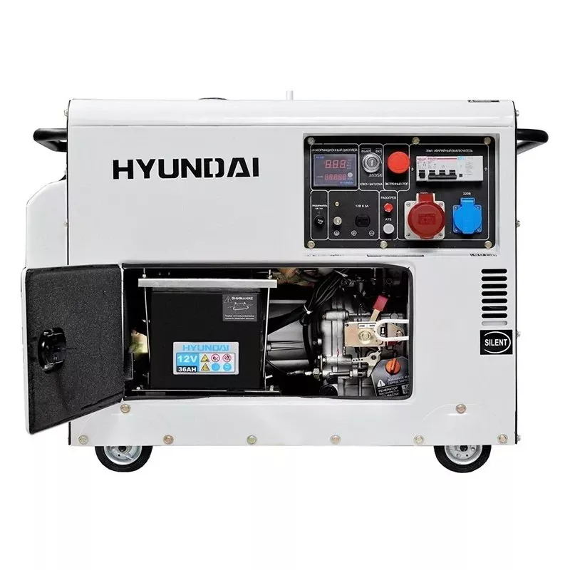 Система защиты дизель-генераторной установки Hyundai DHY 6000SE предотвращает скачки тока и частоты, а также предохраняет двигатель и аккумулятор от перегрузок по напряжению. Кнопка аварийного выключения позволяет быстро остановить мотор, достаточно одного нажатия, чтобы заглушить генератор.