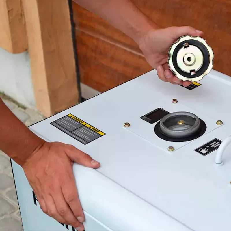 - Полной заправки стального топливного бака объемом 15 л достаточно для использования генератора более 8 ч, при 75% нагрузке на мотор.