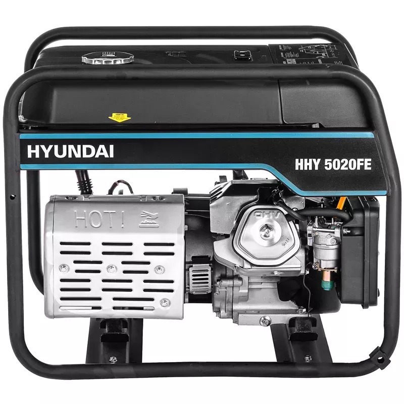 Бензиновый генератор Hyundai HHY 5020FE оснащен электрическим стартером для быстрого запуска двигателя. Выходной мощности 11 л. с. достаточно для подключения оборудования с высокими пусковыми токами и общей нагрузкой до 4,5 кВт.