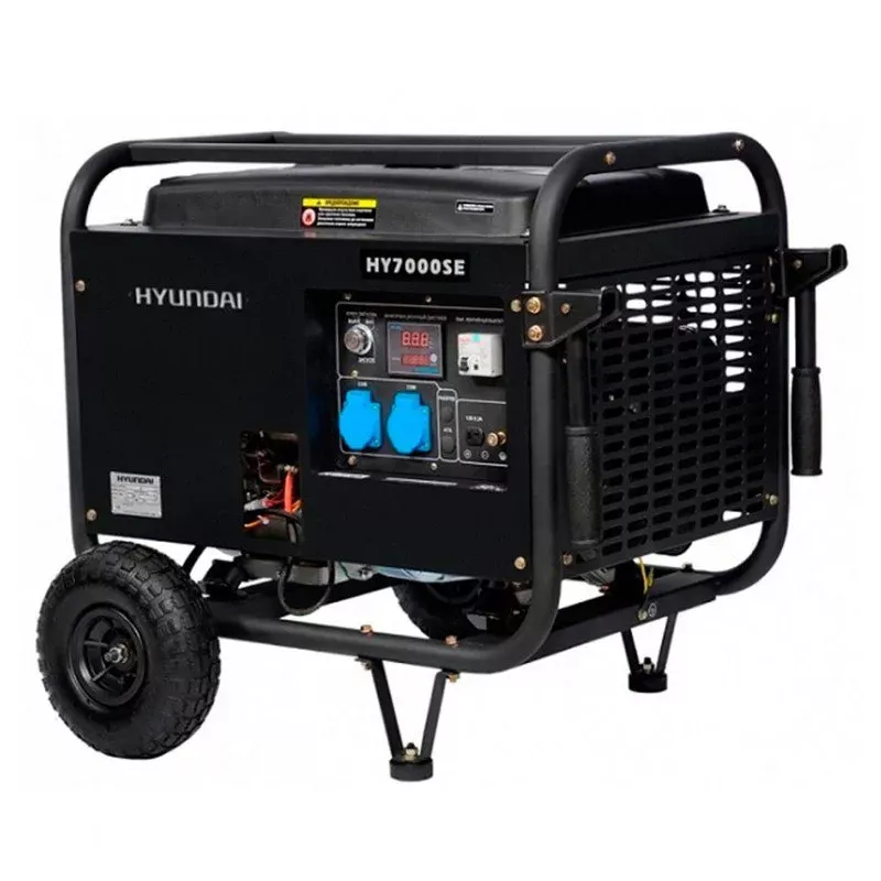 Корпус генератора Hyundai HY 7000SE оснащен жесткой металлической рамой, которая гасит излишние вибрации. За счет этого гарантируется безопасность подключенной техники и комфортная работа, даже если аппарат установлен в жилом помещении.