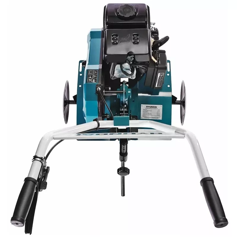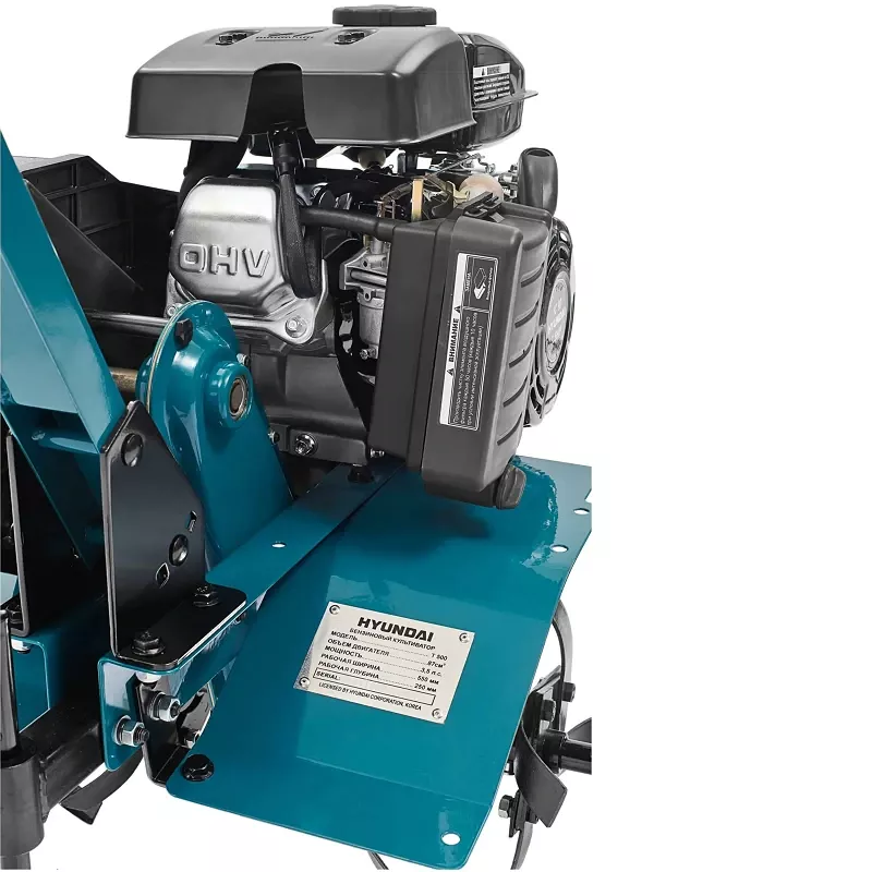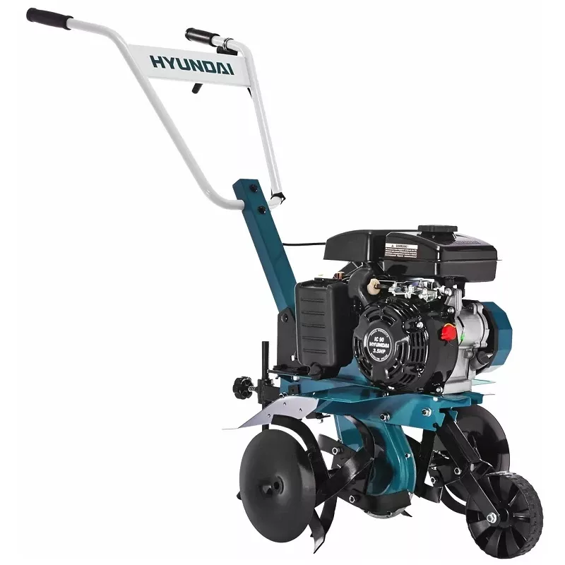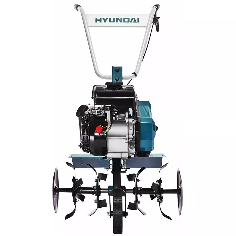 Бензиновый культиватор Hyundai T 500 обладает малым весом для подобной техники 30 кг, за счет чего он маневренный и прост в управлении. В комплект входит колесо, обеспечивающее удобную транспортировку оборудования.
