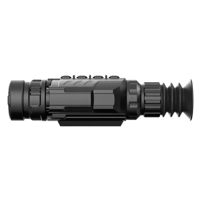 Тепловизор iRay Geni GL 35 имеет компактный и прочный корпус, устойчивый к повреждениям. Устройство выдерживает отдачу до 6000 Дж и может использоваться с любыми охотничьими ружьями и винтовками. Для управления прицелом предусмотрены четыре крупные кнопки, расположенные в верхней части. Между ними есть ребра жесткости, что облегчает поиск нужной кнопки при использовании прибора в темноте.