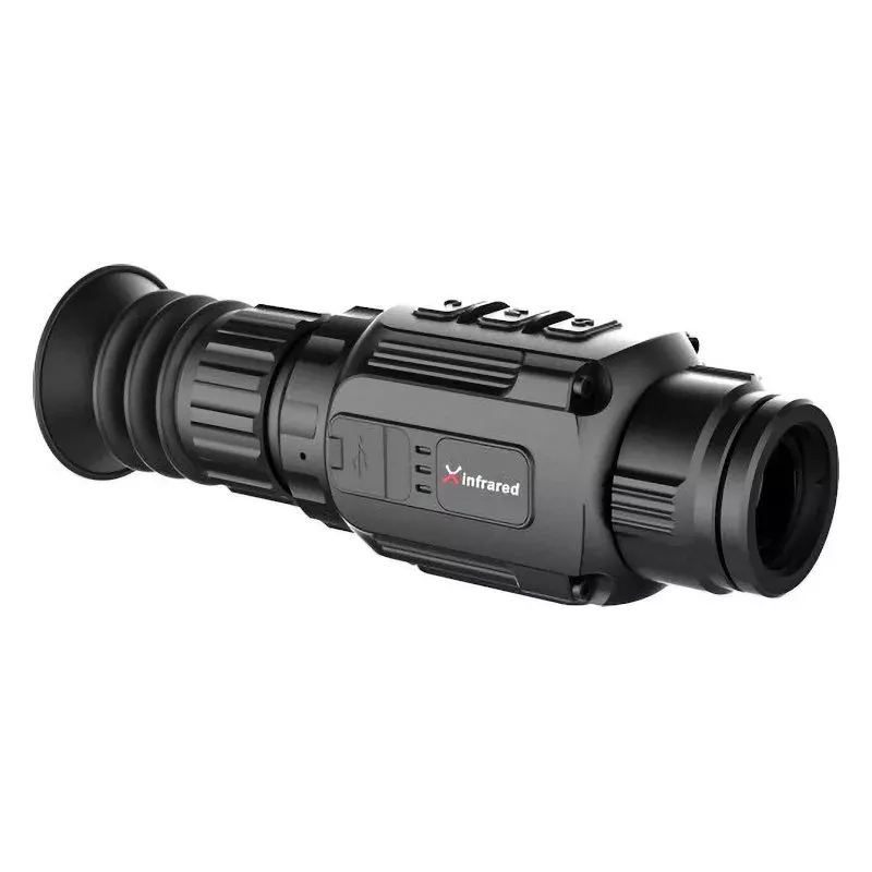 Тепловизионный прицел предназначен для обнаружения целей на ближних и средних дистанциях, позволяет распознать кабана с 293 м, человека с 366 м, автомобиль с 531 м. Это достигается за счет использования чувствительной матрицы на основе оксида ванадия с керамической подложкой. 25-миллиметровый объектив с углом обзора 14,9x 11,2 градуса обеспечивает максимально широкий охват. Чувствительность детектора в 50 мкм позволит вам различать тонкие ветки и волоски на теле животного.