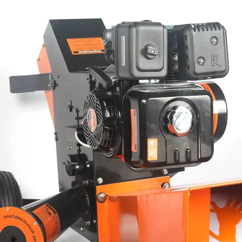 Ручной стартер располагается на боковой панели корпуса. Активация агрегата осуществляется вытягиванием пускового шнура. Эффективное измельчение происходит благодаря режущим элементам – ножам и фрезам. Частота вращения составляет 2400 об/мин, что позволяет быстро перемолоть материал.