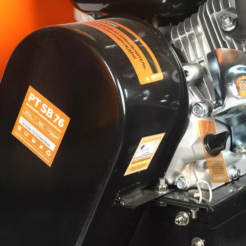 Объем бензобака составляет 3,6 л. За счет этого обеспечивается продолжительная работа без необходимости частых дозаправок. В устройстве установлен 4-тактный двигатель, который отличается от 2-тактных износостойкостью, небольшим количеством выхлопов, малошумной работой и экономией топлива. Это гарантирует продолжительный срок эксплуатации измельчителя Patriot PT SB 76.