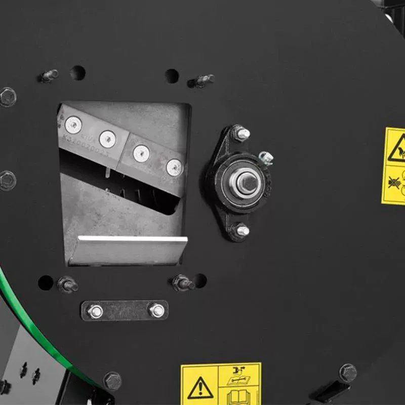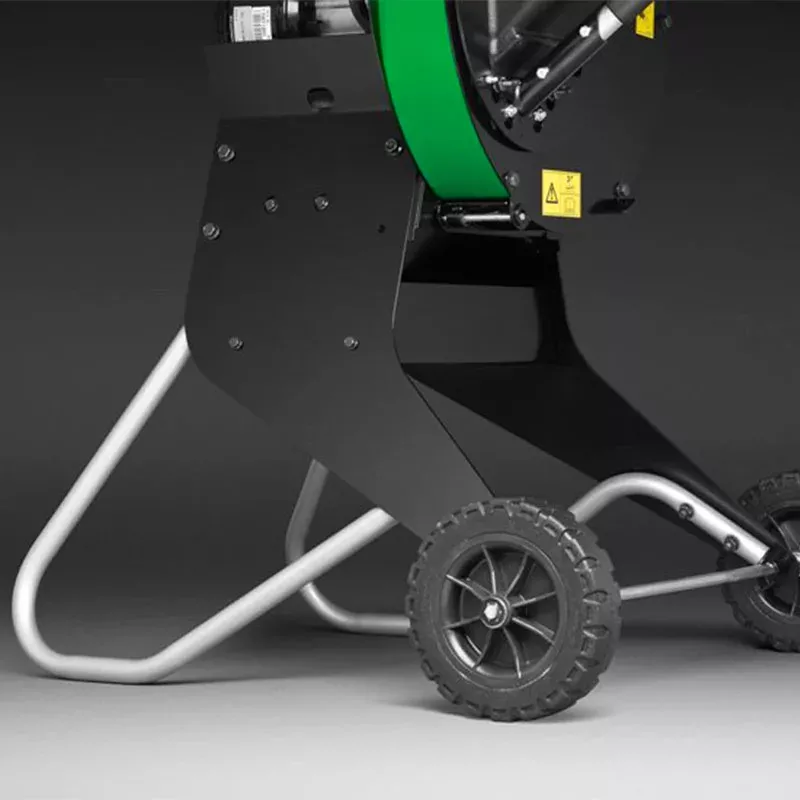 Высокое расположение разгрузочного желоба позволяет выгружать измельченный материал в прицеп, тележку или ящик. Это помогает избежать дополнительной работы по очистке рабочей зоны.