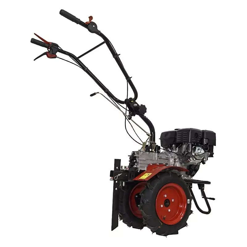 Большие колеса диаметром 45 см с рельефными протекторами отличаются отличным сцеплением с грунтом и проходимостью. Задний ход обеспечивает маневренность машины. Скорость передвижения ступенчато регулируется в зависимости от погодных условий вспашки и состояния почвы.