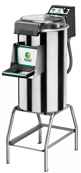 Промышленная картофелечистка Fimar снимает с продукта кожуру путём воздействия на него специальным абразивным диском, с высокой скоростью вращающимся против часовой стрелки под струёй воды.