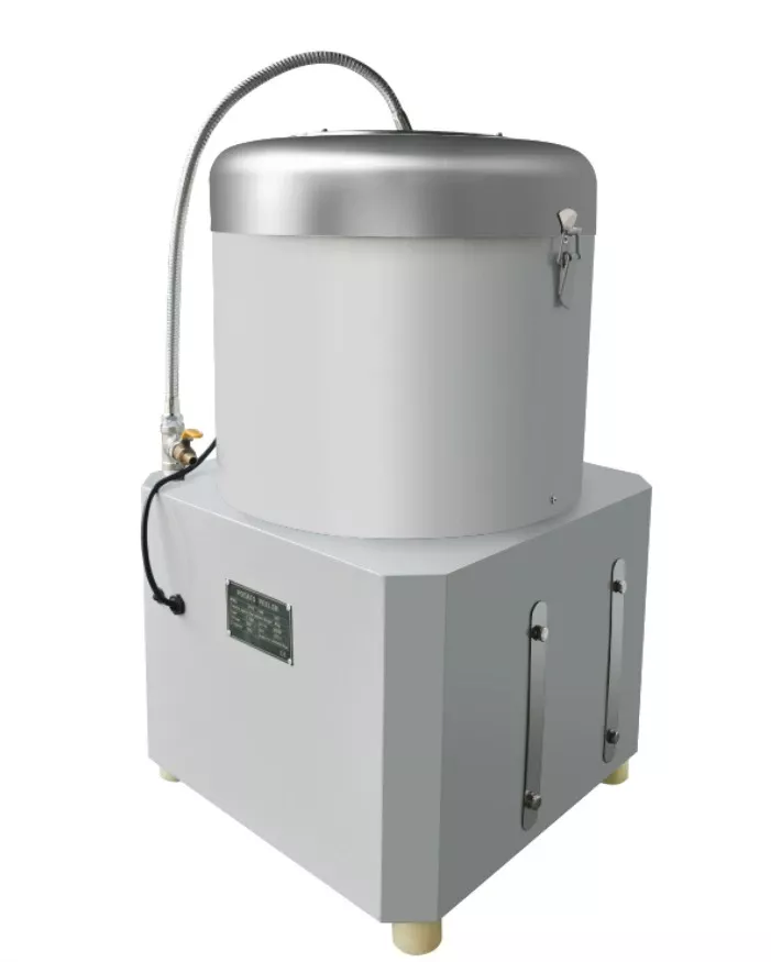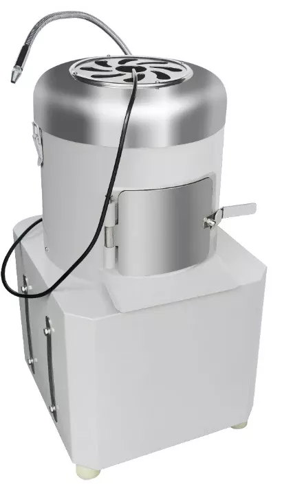 Очистка за счет принудительного контакта картофеля с абразивной поверхностью стенок картофелечистки и вращающегося диска, расположенного в основании емкости.