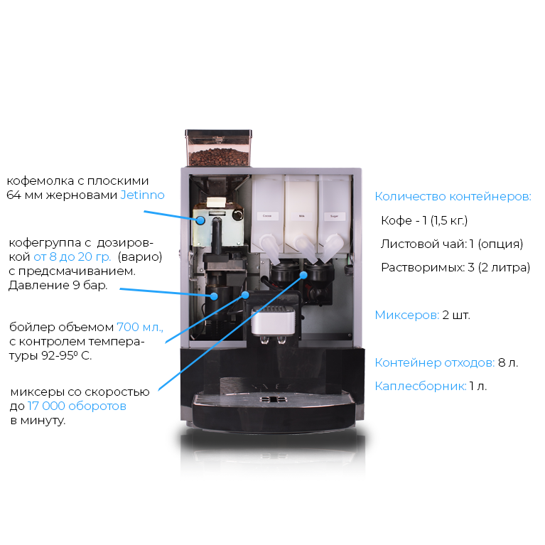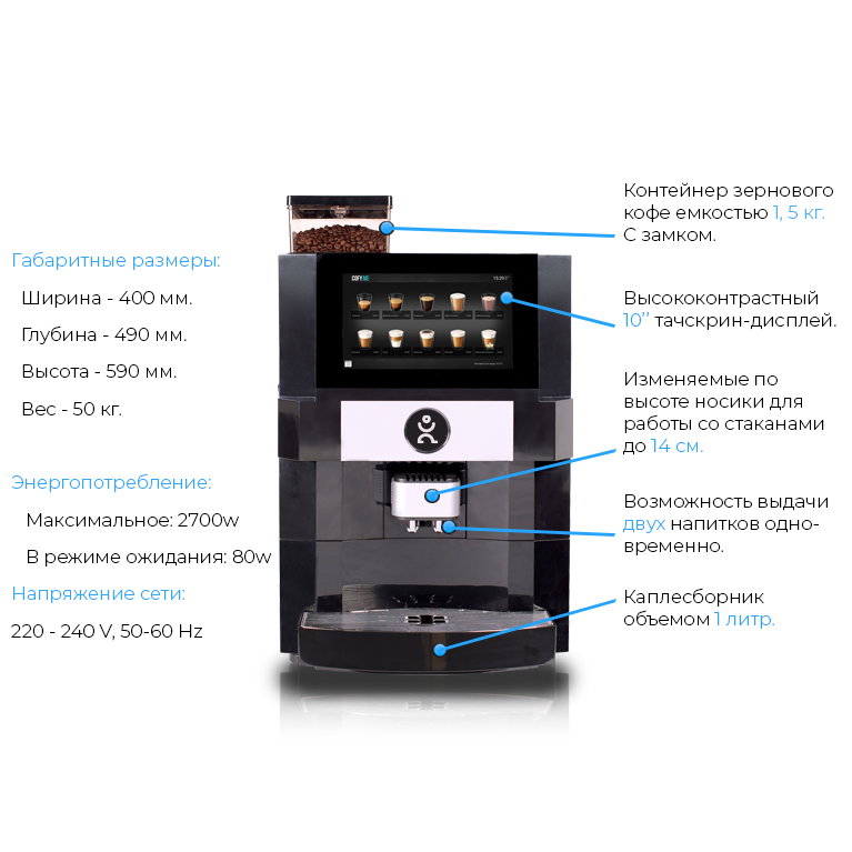 - Автоматическая промывка, настраиваемая по времени или по количеству выданных напитков