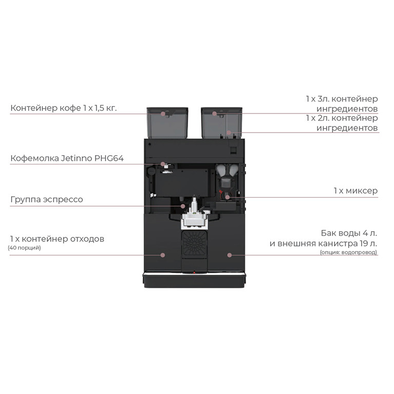 Кофемашина Jetinno JL32A — это суперсовременный аппарат, который позволяет приготовить кофе с натуральным молоком, зерновой кофе и растворимые ингредиенты. У неё два контейнера для последних. Дисплей кофемашины окружён великолепной светодиодной подсветкой, что делает дизайн JL32 стильным и удобным в использовании. Инновационная кофемолка и кофегруппа Jetinno обеспечивают великолепный вкус напитков. А современная молочная система гарантирует высокое качество молочной пены.