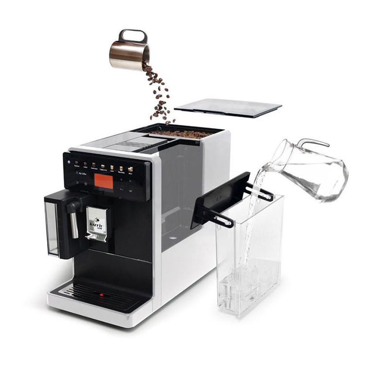 Бариста у вас дома с полностью автоматической кофемашиной Kaffit A5. Она отличается компактностью, обтекаемым стильным и лаконичным дизайном. Кофемашина имеет регулируемое заварное устройство, систему предварительной ароматизации и предварительного нагрева, энергосберегающий режим, контроль наличия кофейных зерен, и многие другие функции, которые делают ее удобной и простой в использовании.