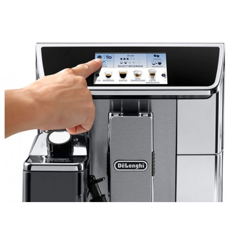 Революционным новшеством по праву считается огромный (для кофемашин) цветной сенсорный дисплей размером 4.3” дюйма. В модели ECAM 650.75 MS отсутствуют какие-либо физические кнопки старого образца, а всё управление осуществляется с этого дисплея. Для совсем ленивых компания ДеЛонги создала приложение «Coffee Link», которое легко могут скачать пользователи IOS и Android. С помощью этого приложения можно приготовить любой напиток на расстоянии, а главным минусом такого софта является то, что пока не понятно как после приготовления кофе "придёт" к Вам в соседнюю комнату.