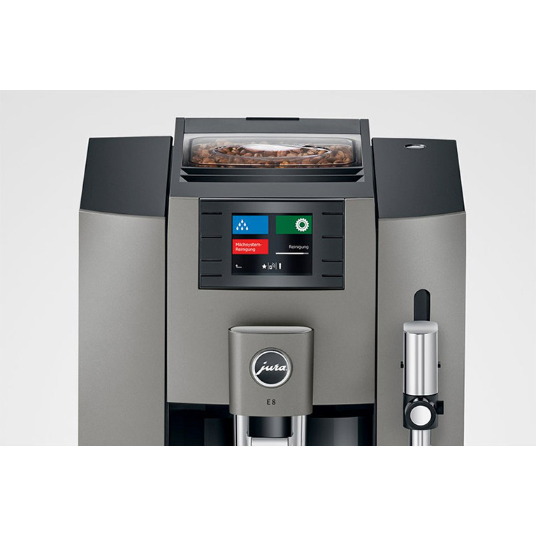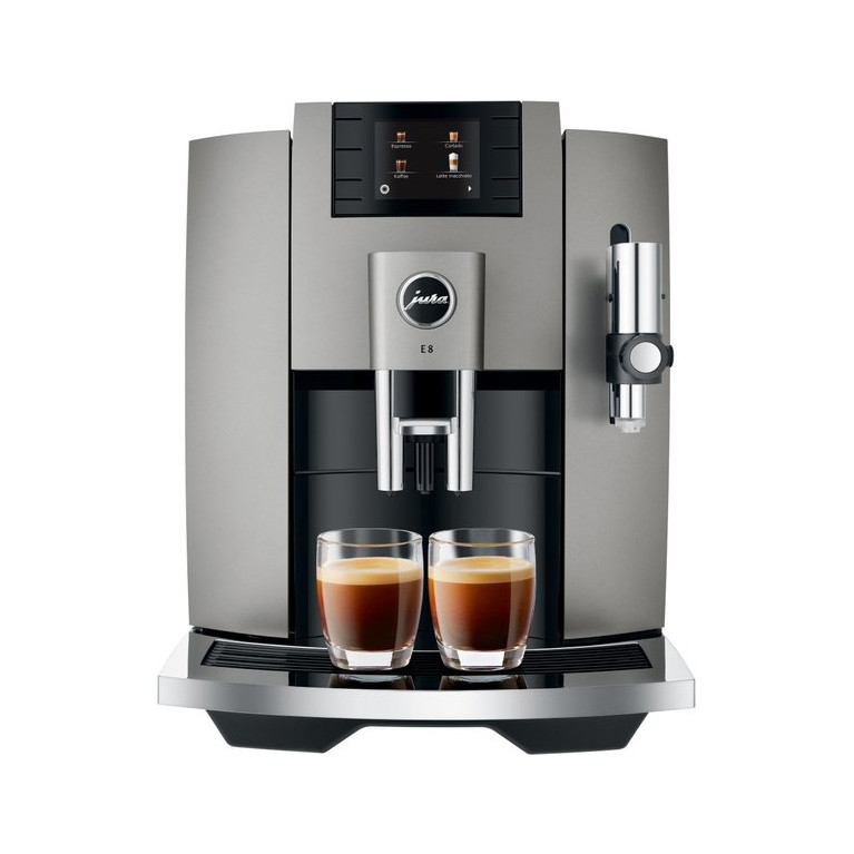 Кофемашина Jura E8 Dark Inox серия 2020 года- последняя версия одной из лучших моделей кофемашин Jura. Кофемашины JURA серии E всегда славились своими напитками и легкостью управления и обслуживания. Новая линейка серии E продолжает хорошую традицию и усовершенствует каждый аспект приготовления ароматного кофе.
