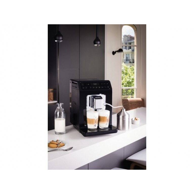 Встроенный таймер даёт возможность включать и отключать устройство по расписанию. Так устройство не расходует много электроэнергии, но готова к использованию в нужное время. Функция самоочистки помогает удалять посторонние отложения и предотвращает развитие бактерий в системе подачи воды. Регулируемый дозатор даёт возможность использовать посуду разного размера. Включённый в комплект Krups EA8918 фильтр-картридж предотвращает образование накипи. Кроме того, он уменьшает степень минерализации воды и удаляет из неё вредные вещества, за счёт чего улучшается вкус и полезные свойства кофе.