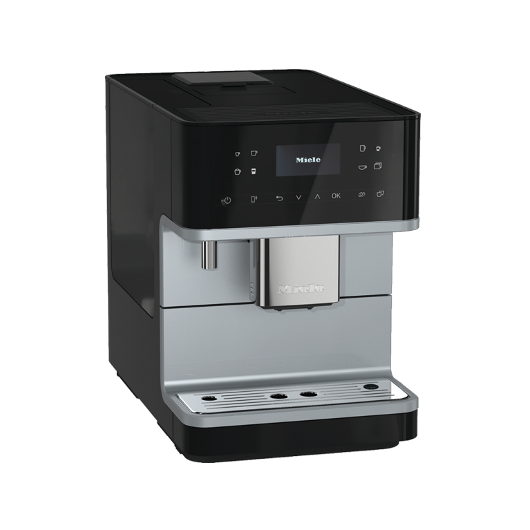За прибором Miele CM6160 просто ухаживать. Автоматическая программа устранит накипь, о необходимости провести очистку предупредит специальный индикатор. Съёмный варочный блок легко промывается, некоторые детали можно помещать в посудомойку.