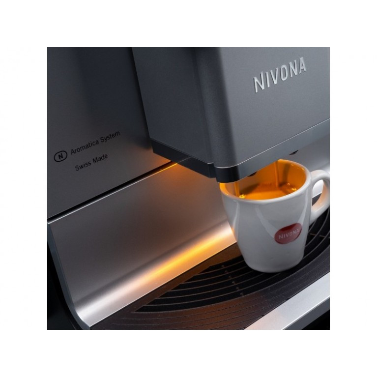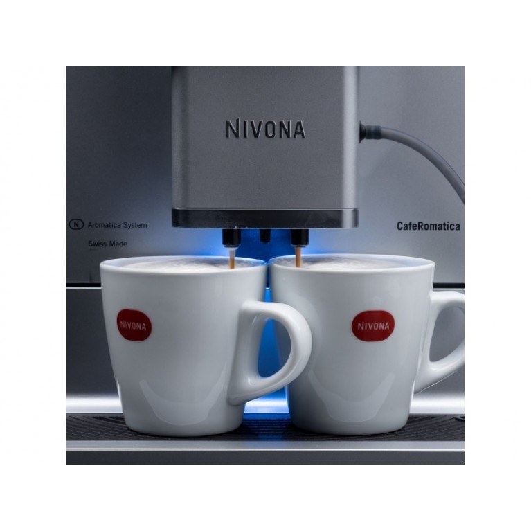 Функция "Spumatore Duo" позволяет приготовить одновременно две чашки капучино всего лишь одним касанием. Регулируемый по высоте (до 14 см) кофейный дозатор. Двухцветная подсветка чашки во время приготовления кофе для эстетической привлекательности. Nivona NICR CafeRomatica 970 оснащена программами для промывки, очистки и удаления накипи, которые запускаются с помощью нажатия на одну кнопку.
