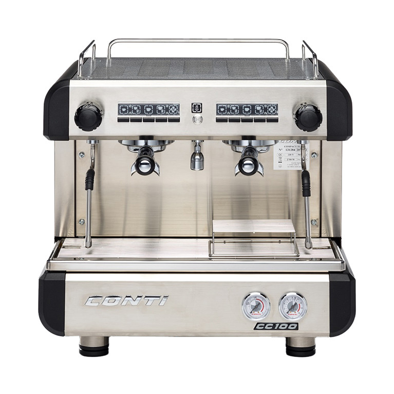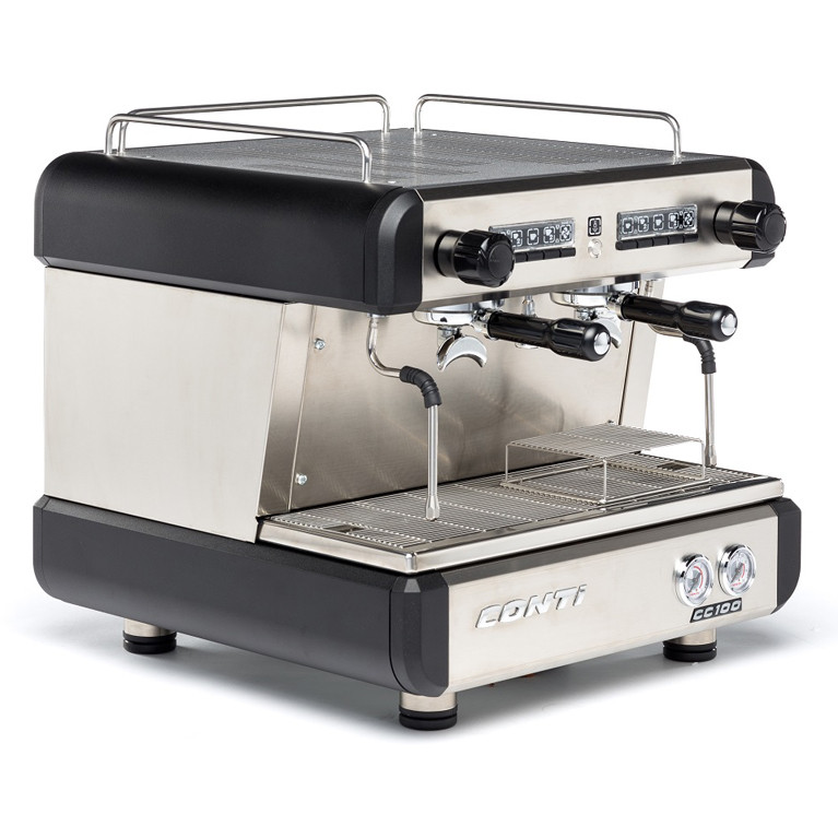 Кофейный аппарат CONTI CC100 Compact TC Black 2 группы идеально подходит для использования в кофейнях, барах и ресторанах. Этот профессиональный компактный эспрессо-кофемашина с двумя группами от компании Conti, Монако, оснащена PID контроллером, подключением к водопроводу и термосифонной системой стабилизации температуры.