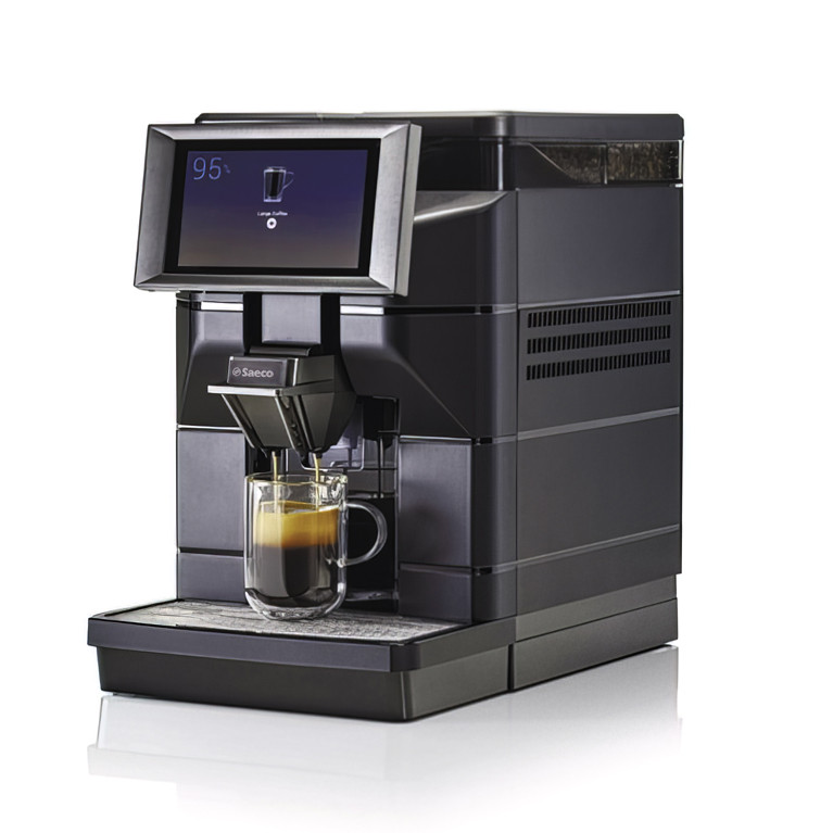 Saeco Magic B1– представляет новое и инновационное семейство профессиональных кофемашин, обеспечивающих повышенную производительность в сочетании с современными функциями и высоким уровнем дизайна. Профессиональное устройство с расширенной камерой, способное вместить от 8,5 до 15 г кофе. Количество дозируемого кофе можно регулировать автоматически с помощью меню. Цветной сенсорный экран с диагональю 7 дюймов обеспечивает простую навигацию по меню и широкому ассортименту напитков. Дозаторы кофе, молока и воды установлены в одном баке. Это облегчает установку и регулировку высоты (от 75 до 160 мм), позволяя использовать различные типы чашек.