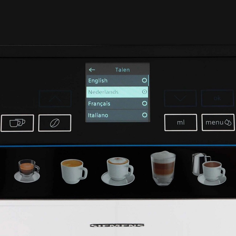 Кофемашина Siemens TQ507R02 EQ.500 integral оптимально подходит не только для домашнего, но и офисного использования. Создайте до шести индивидуальных профилей и вам больше не придётся каждый раз задавать настройки заново. Если вы не любите пить кофе в одиночестве, то приготовьте две чашки подряд и угостите кого-нибудь из домочадцев или коллег. Быстро не остывать напитку поможет предварительный нагрев кружек на специальной подставке. Дозатор регулируется по высоте, так что наполнять можно и стаканы. Молочная система автоматически очищается паром – вам не нужно заниматься этим вручную. Заварочный блок снимается, поэтому он легко промывается под струёй проточной воды. О необходимости удаления накипи сообщит наглядный индикатор.