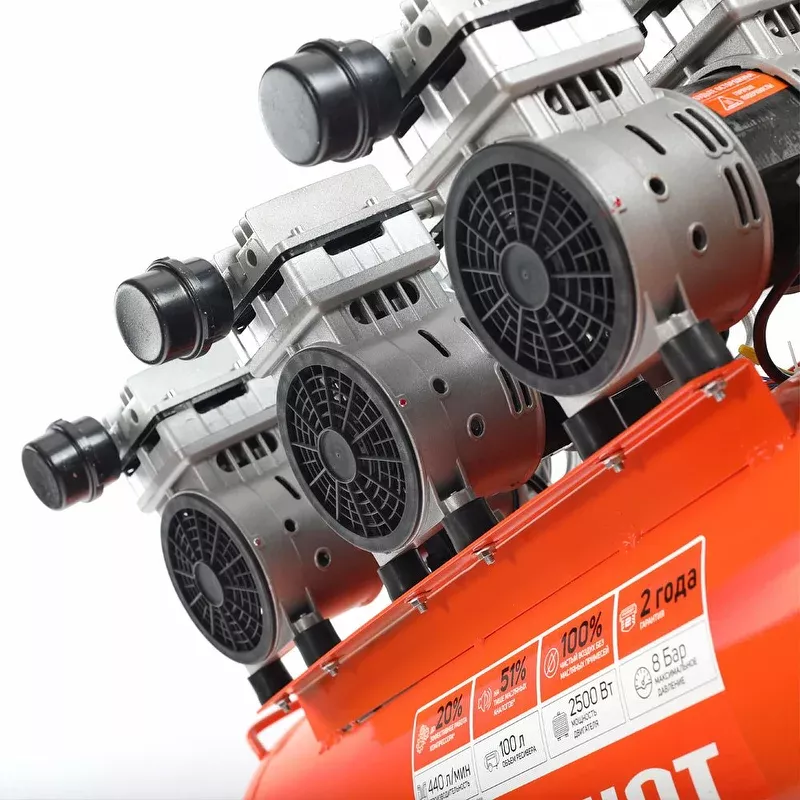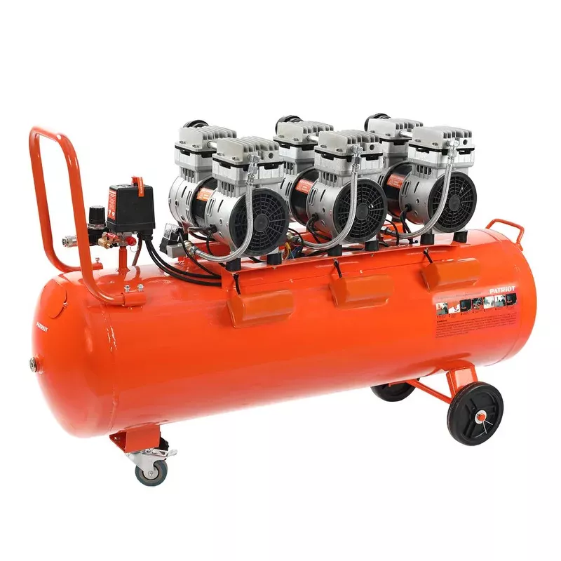 Компрессор Patriot WO 100-440 работает в 2 раза тише, чем аналогичные по мощности модели на масле. За счет этого вам не понадобится повышать голос при разговоре, если вы находитесь в помещении с работающим агрегатом. Помимо этого, за счет безмасляного типа модель можно перевозить и хранить в любом положении.