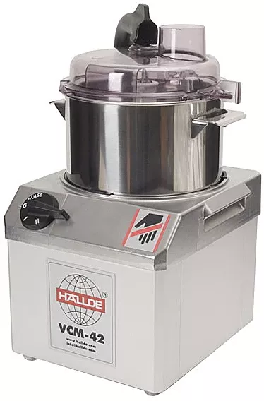 Куттер Hallde VCM-42 предназначен для переработки влагосодержащих, сухих и жидких пищевых продуктов: измельчение, мелкая нарезка и перемешивание практического любого типа продукта - от овощей до орехов, приготовление ароматизированных масел, майонеза, десертов, фарша, пюре, паштетов, панировочных сухарей и т.п. Модель подходит для кухонь детских садов, домохозяйств, армейских столовых, морских судов, ресторанов, отелей, предприятий общественного питания, пекарен, кафе/баров, супермаркетов и т.д.