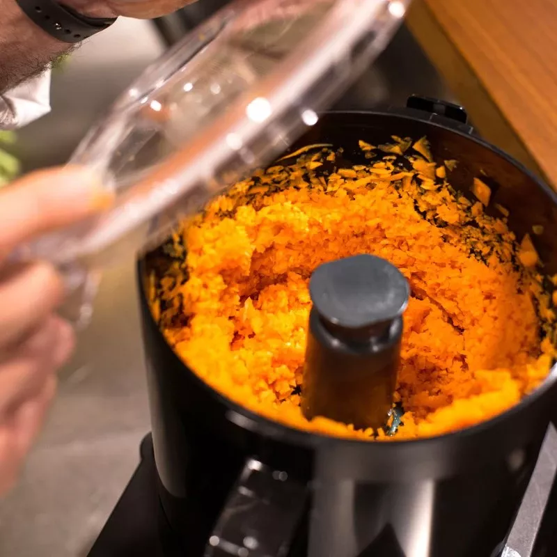 чаша объемом 4,4 л оснащена боковой мешалкой и высоким валом для увеличения производительности.