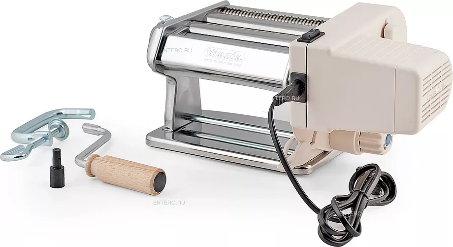 В комплект поставки входит электропривод PastaFacile, который позволяет оператору работать обеими руками и получать на выходе однородный пласт теста, так как скорость роликов постоянная.