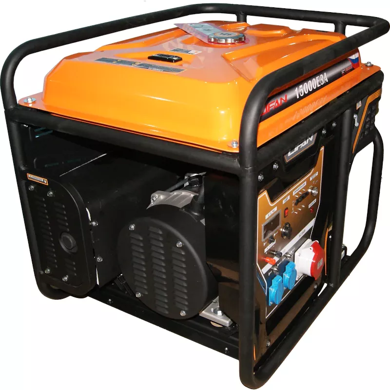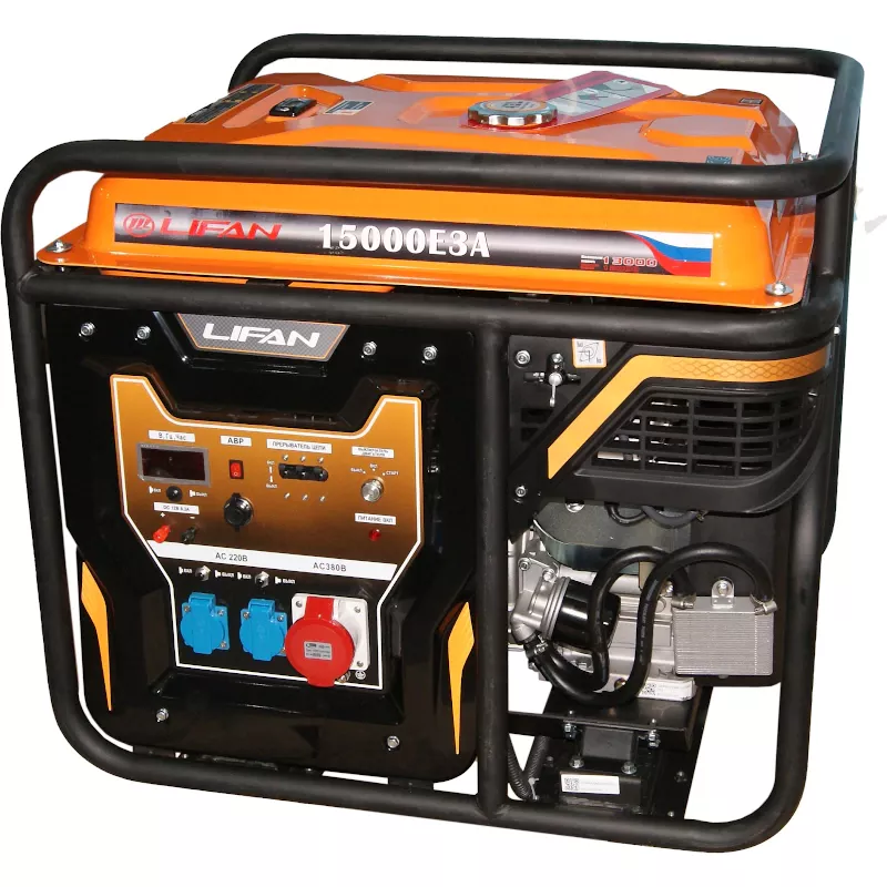LIFAN 15000E3A - мощный трехфазный бензиновый генератор, применяемый в качестве источника электроэнергии на дорожных и строительных работах, промышленных объектах, на личных загородных участках, в автомастерских, магазинах и в других подобных областях. Исключительная надежность, устойчивость к поломкам и высочайшая производительность делают данную модель одной из лучших на рынке в своем классе электрогенераторов.