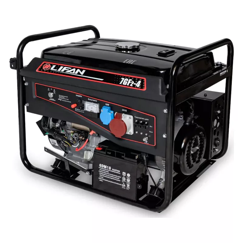 Генератор LIFAN 7 GF2-4 представляет собой надёжную модель, которая служит источником питания для электроприборов общей мощностью до 7.5 кВт. Данное устройство прекрасно подходит для использования вдали от центральной сети - на даче, на стройке, в лесу и т.д. Генератор работает на бензиновом топливе. Данная модель имеет компактный корпус, отличается простотой использования. Есть функция автоматического регулирования напряжения, которая защищает подключенную технику от скачков и перепадов.