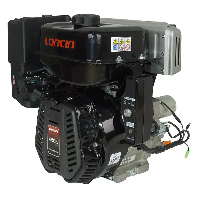 Одноцилиндровый двигатель, объем 420 куб.см, 15 л.с, горизонтальный вал 25 мм, ручной и электрический запуск, катушка освещения 5А, лодочная серия.