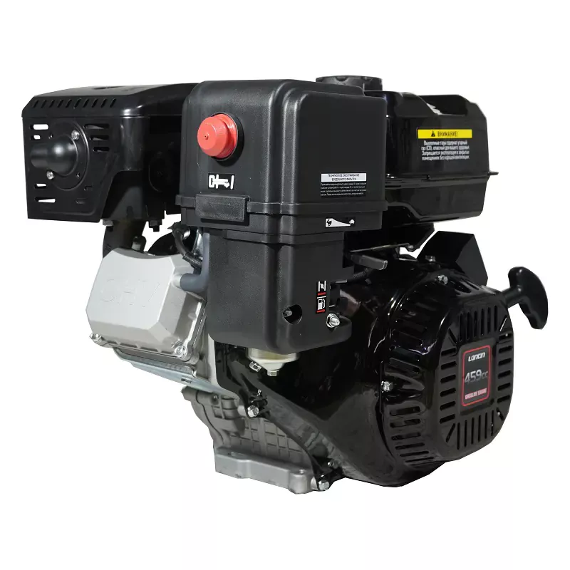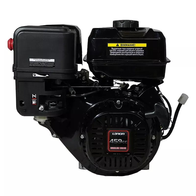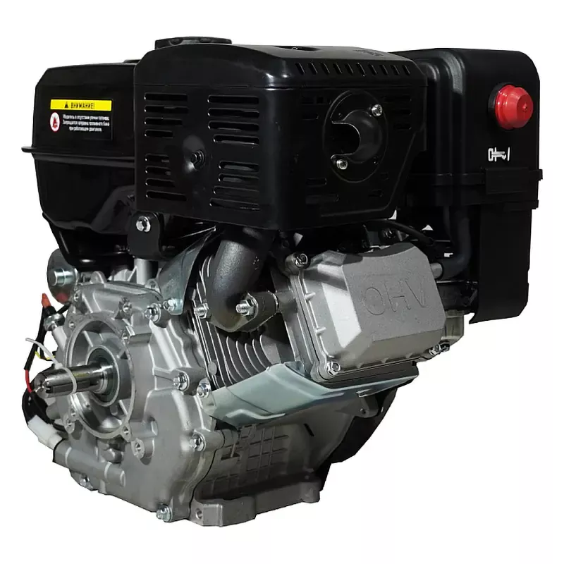Одноцилиндровый двигатель, объем 458 куб.см, 20 л.с, горизонтальный вал 25 мм, ручной и электрический запуск, катушка освещения 18А.
