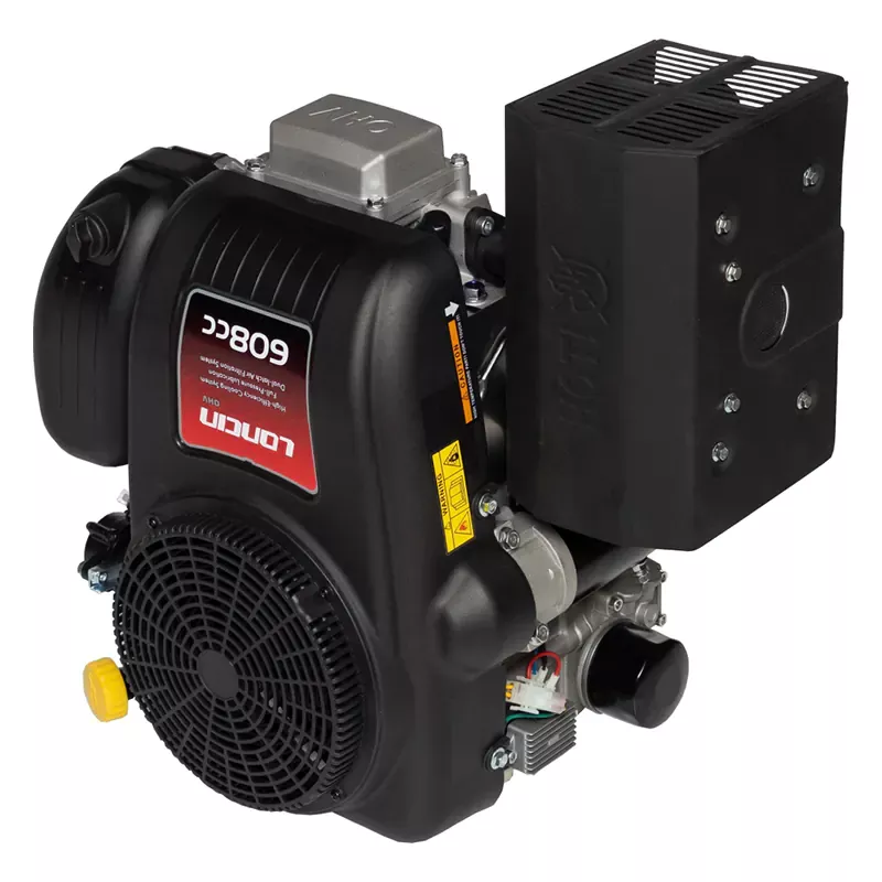 Одноцилиндровый двигатель, объем 608 куб.см, 19 л.с, вертикальный вал 25.4 мм, электрический запуск, катушка освещения 15А.