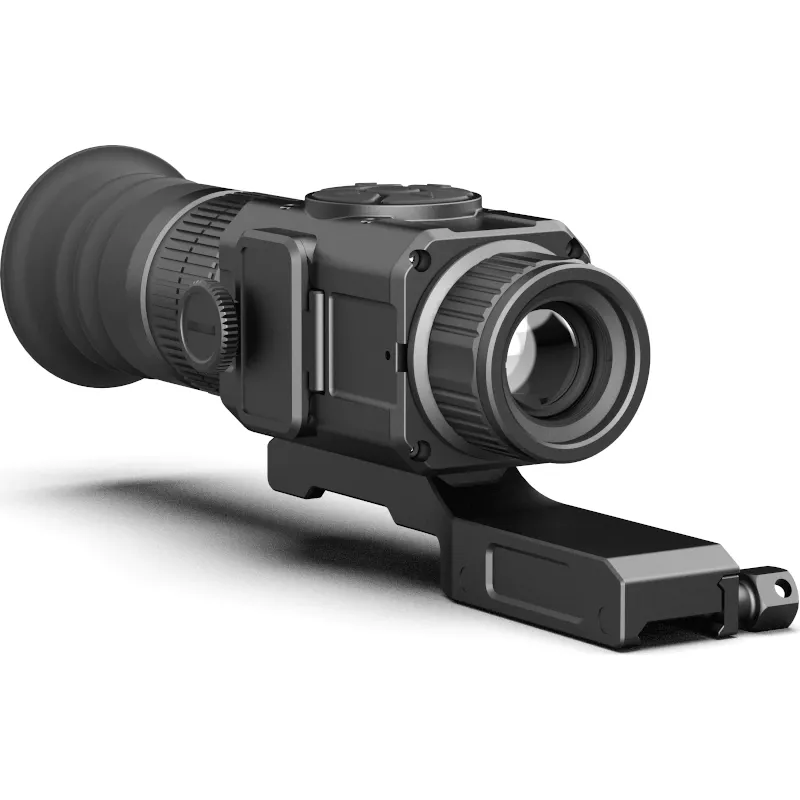 Хороший баланс и эргономика. Прицел лёгкий и компактный, с хорошим балансом и эргономикой, спроектирован под управление любой ведущей рукой, в т.ч. в плотных зимних перчатках. Колёса фокусировки широкие, с частой накаткой для лучшего сцепления. Кнопки на круговой панели управления нажимаются одним пальцем — полезно для активации «быстрых» функций без захода в меню, а дотянуться до них легко с любой стороны — рассчитано и на левшу, и на правшу. Резиновый наглазник-гофра плотно прилегает к лицу, убирает засветку днём и маскирует свечение экрана в темноте.