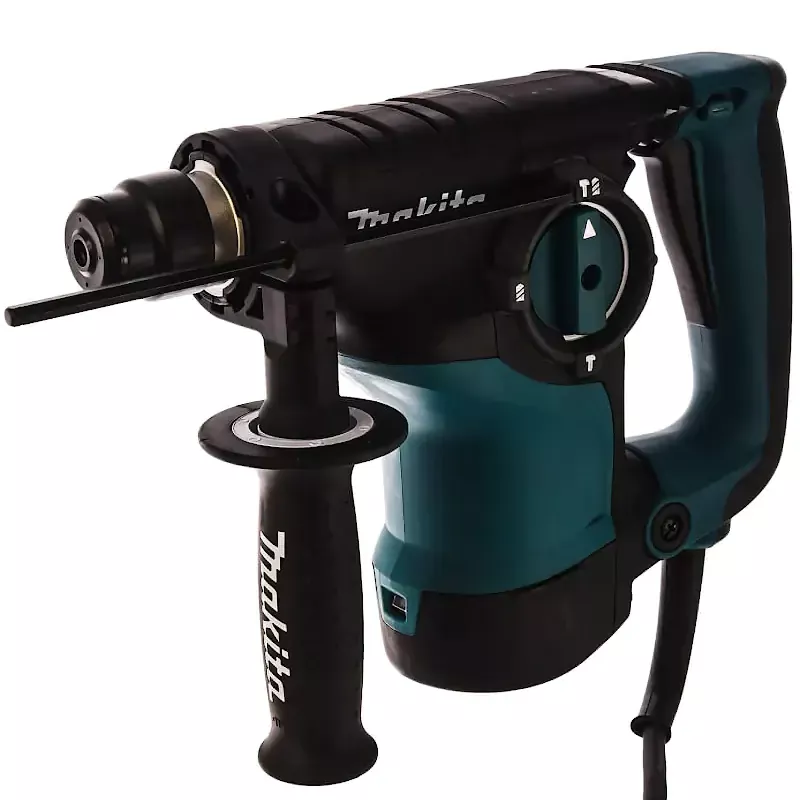 Перфоратор сетевой Makita предназначен для сверления отверстий и долбления штроб в твердых материалах: бетоне, камне кирпиче. Инструмент используют в быту и на стройке для прокладывания кабель каналов под проводку, создания пазов для техники, высверливания отверстий для дюбелей и другого крепежа. Максимальный диаметр сверления в камне составляет 28 мм, в дереве – 32 мм, в металле – 13 мм, коронкой в бетоне – 80 мм. Замена насадок производится без использования специальных ключей благодаря быстрозажимного патрону SDS-plus.