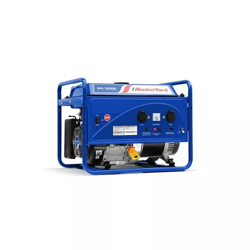 Бензогенератор MasterYard MG 5500R 5,5 кВт - эффективное устройство с автоматической системой регулировки напряжения, большим топливным баком емкостью 25 литров, двумя однофазными розетками и выходом 12V для зарядки автомобильного аккумулятора.