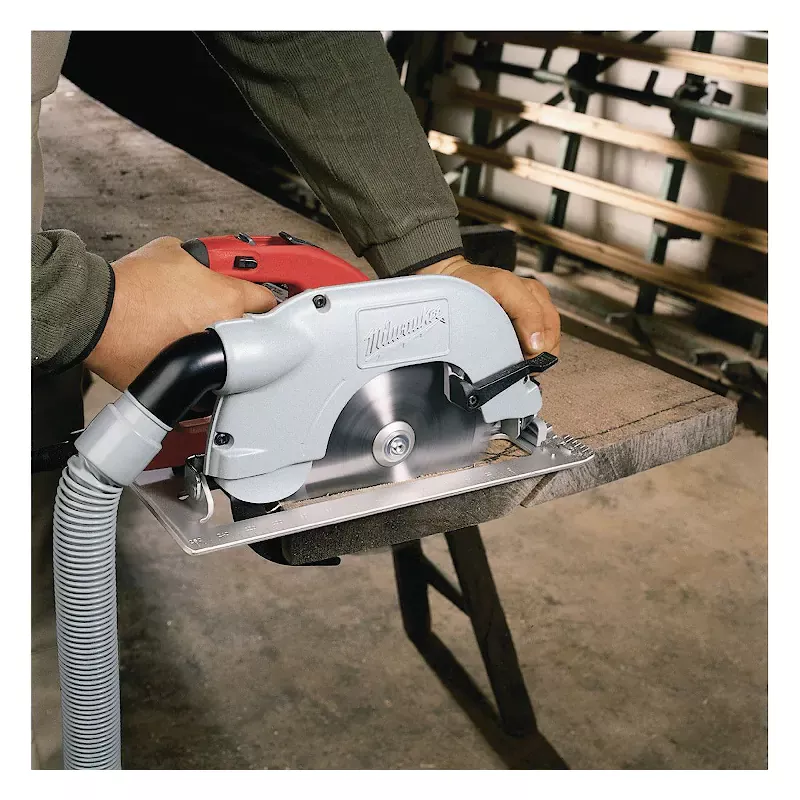Циркулярная пила Milwaukee SCS 65 Q/K 638051 предназначена для нагруженных работ на стройплощадках и столярных мастерских. Угол пропила также регулируется в диапазоне от 45 до 90 градусов. Опорная плита сделана из алюминиевого литья и способна выдерживать большие нагрузки. Специальный патрубок позволяет подключить пылесос для отвода опилок.